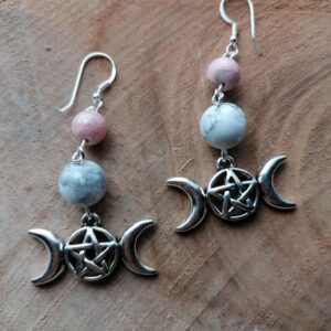 Boucles d’oreilles Triple Lune – Howlite & Rhodocrosite