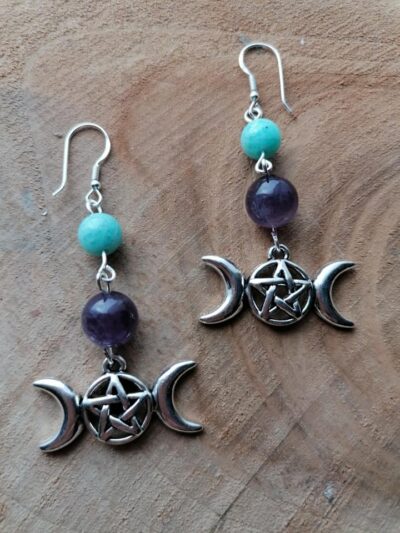 Boucles d’oreilles Triple Lune – Améthyste & Amazonite