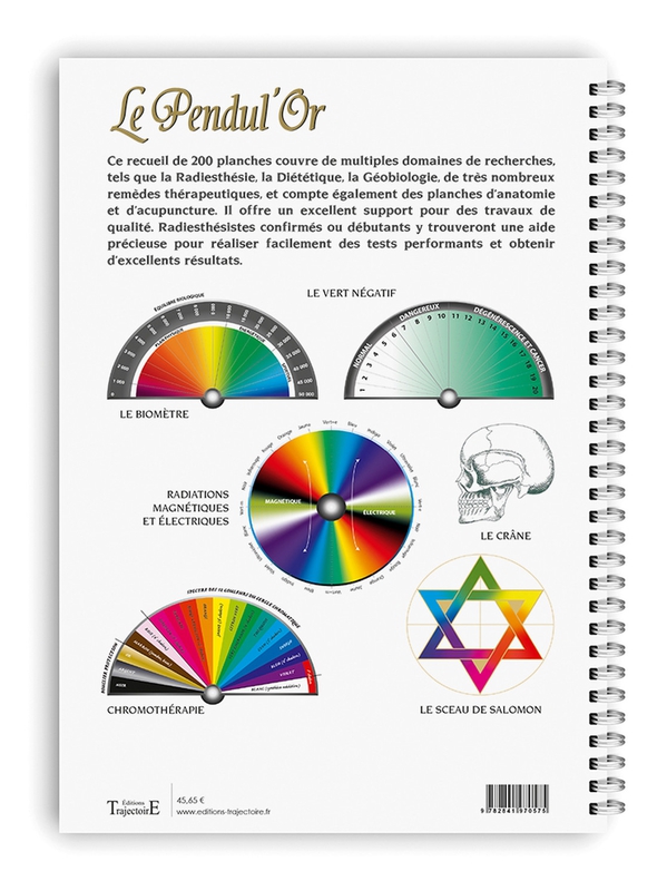Le Pendul’or est la somme la plus considérable jamais rassemblée dans le domaine de la radiesthésie : il contient 200 planches pour les recherches sur les jeux et pour vous guider dans vos choix en aromathérapie, diététique, homéopathie, chromothérapie, géobiologie, etc. Pour élargir vos possibilités dans toutes les applications possibles de la radiesthésie et améliorer la précision de vos recherches.